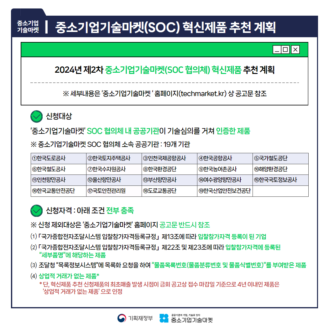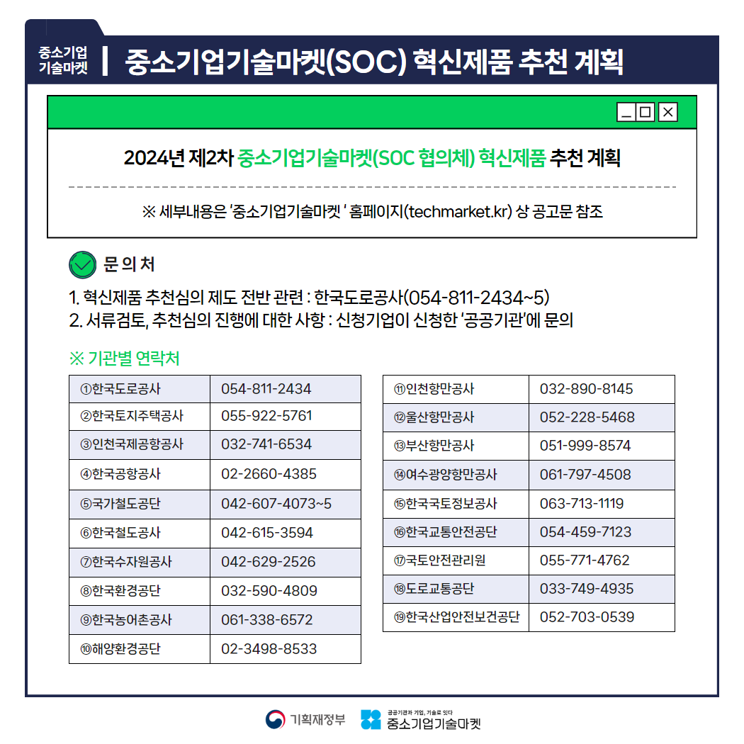 * 문의사항 : 054-811-2464(한국도로공사 기술마켓처)