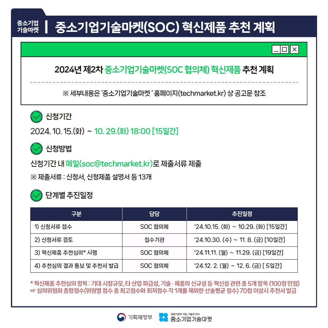 2024년 10월 중소기업기술마켓 카드뉴스를 업로드하오니