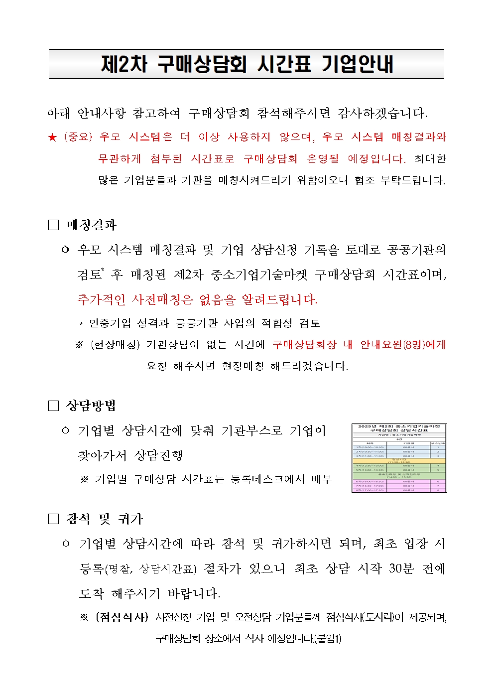 ※ 첨부파일 : 최종 매칭시간표 / 기업안내문