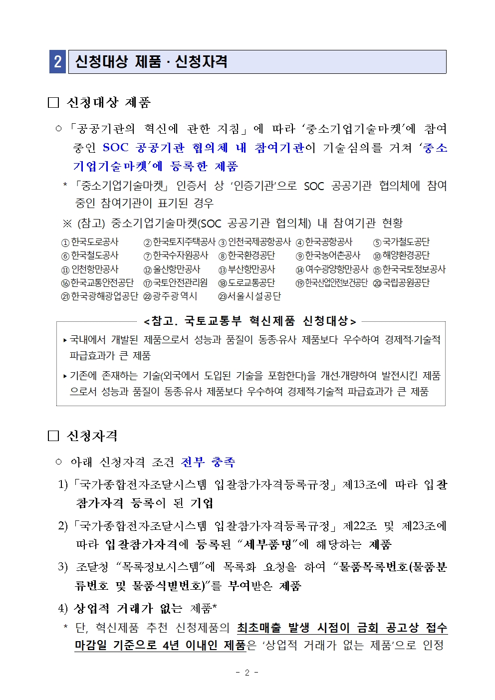 2025년 제4차 중소기업기술마켓 SOC공공기관 협의체 혁신제품 추천 공고(변경)