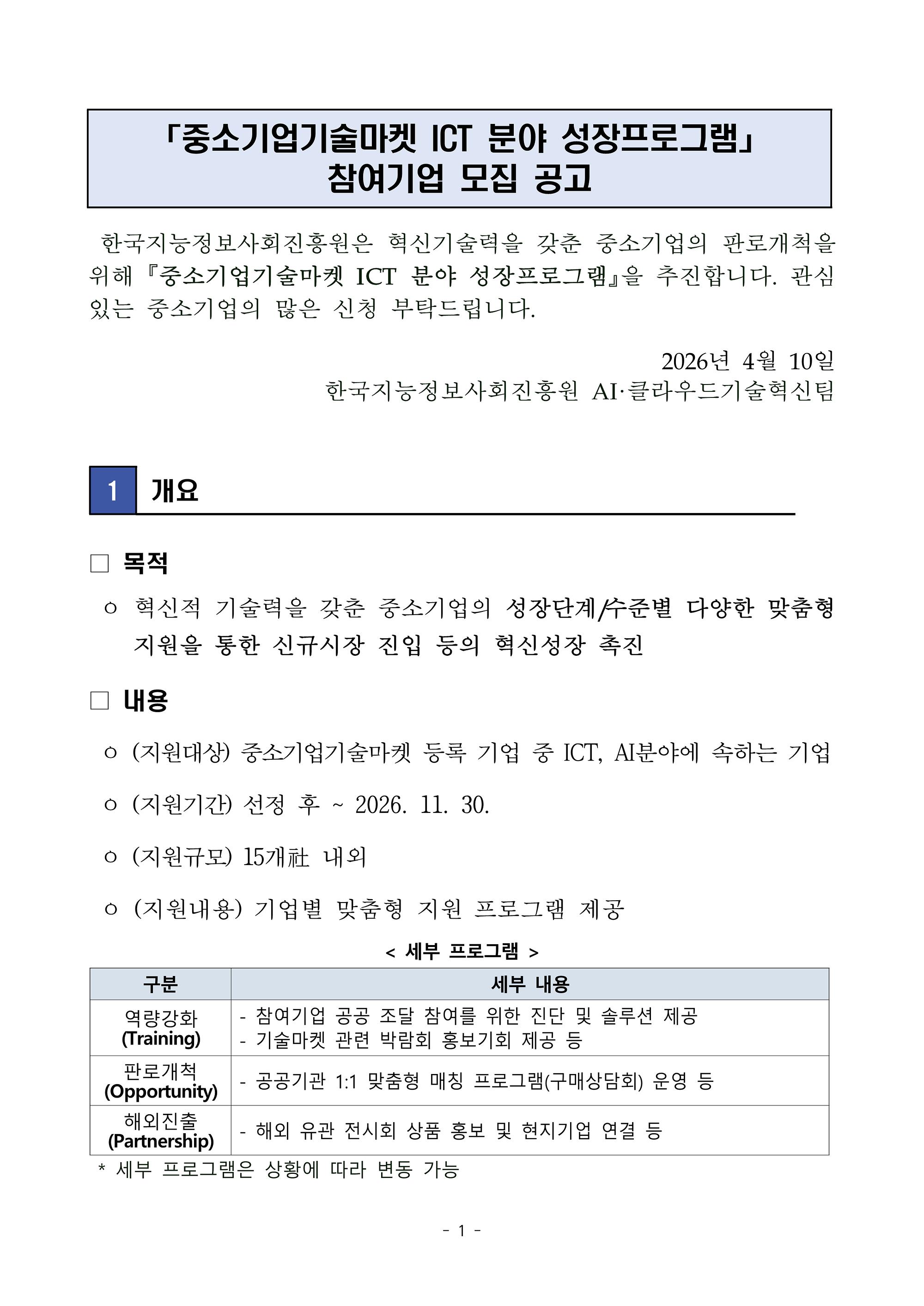 2026년 제2차 중소기업기술마켓 SOC 공공기관 협의체 혁신제품 추천 공고