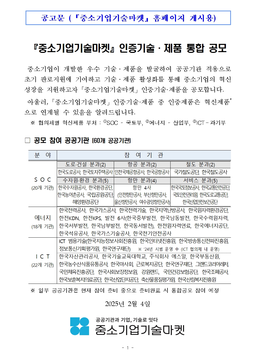 『중소기업기술마켓』 인증기술·제품 통합 공고문.hwpx