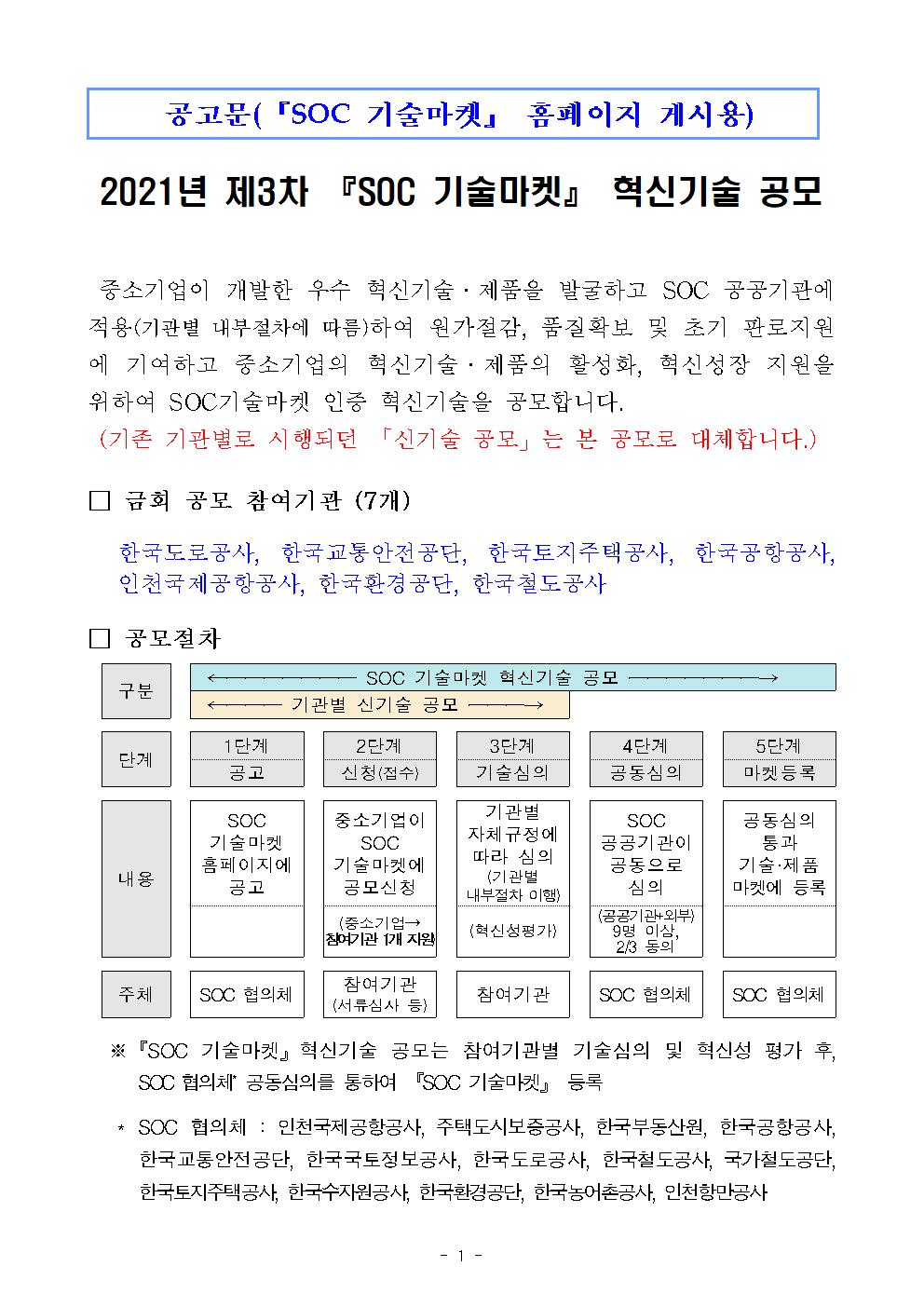 ★(참고)`21년 제3차 SOC 기술마켓 혁신기술 공모내용 요약(TS 수정).hwp