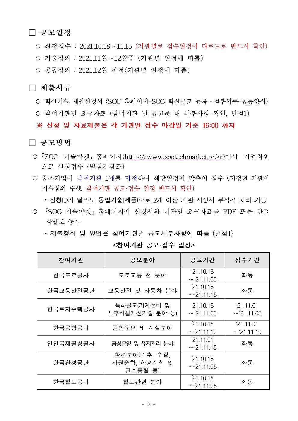 ※ 참여기관 별 공모 및 접수 일자를 반드시 확인바랍니다.