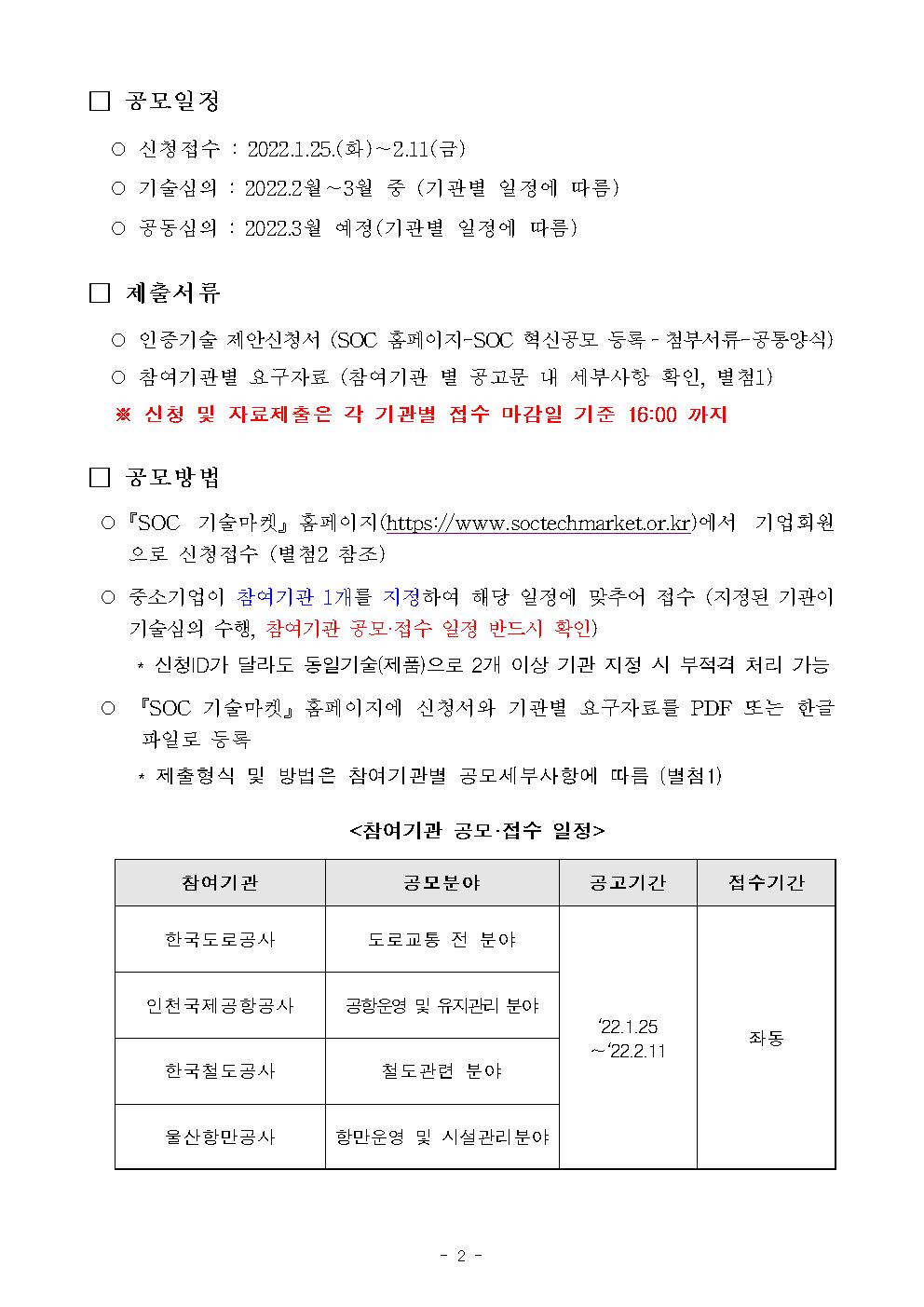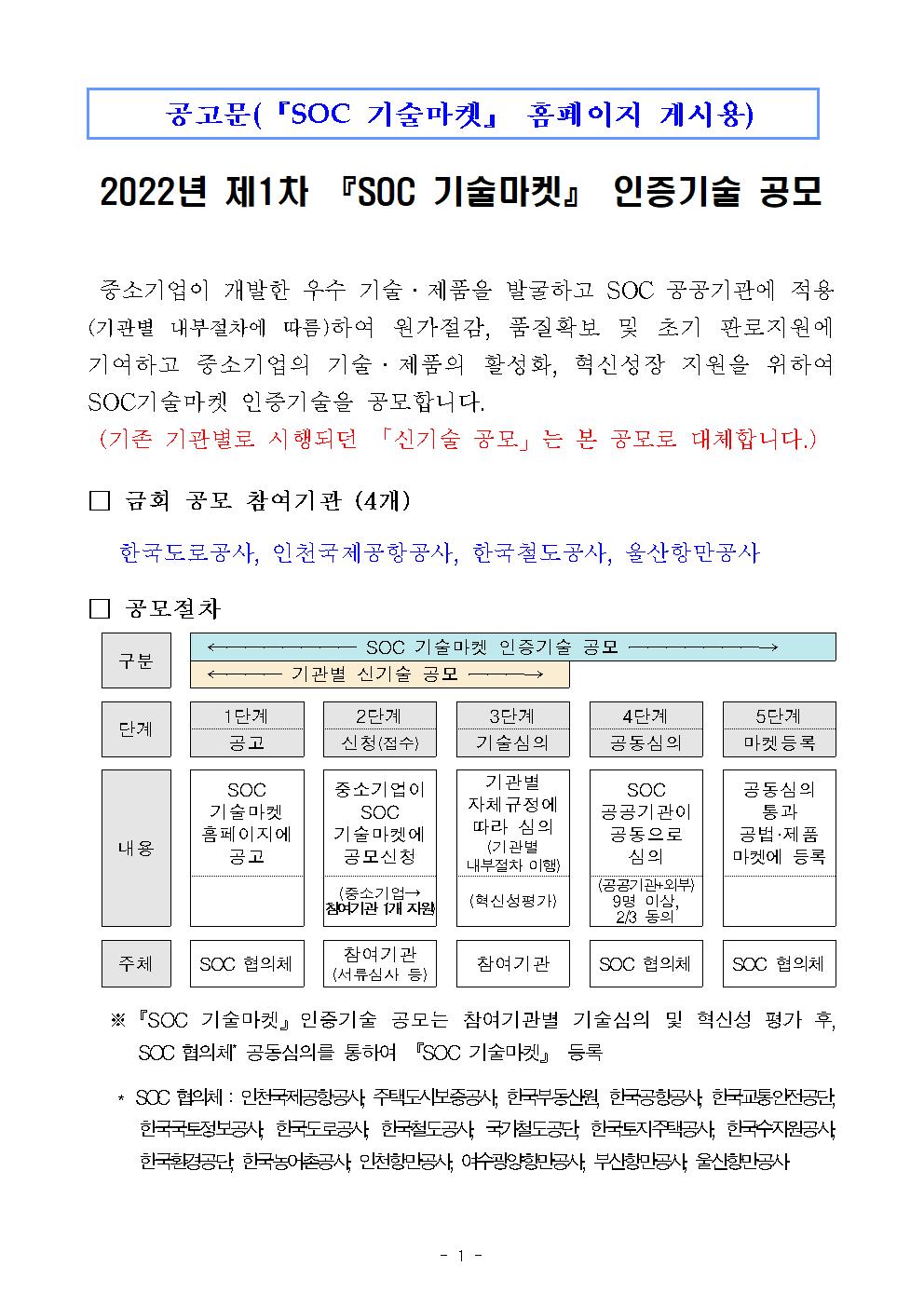 ★(참고) `22년 제1차 SOC 기술마켓 인증기술 공모 내용.hwp