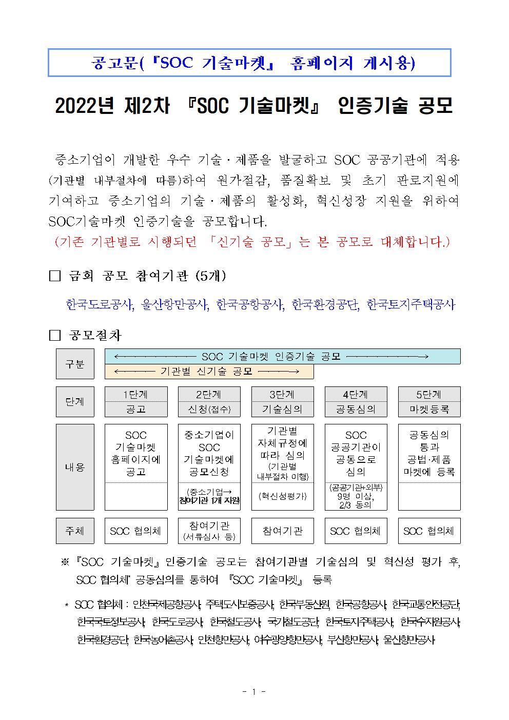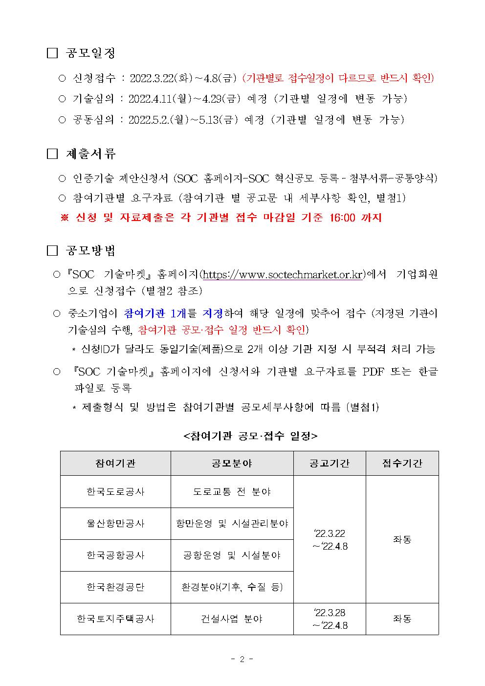 ★(공고) 2022년 2차 SOC 기술마켓 인증기술 통합 공고문.hwp