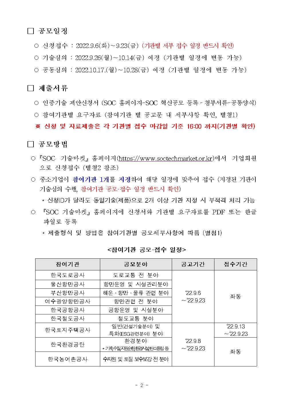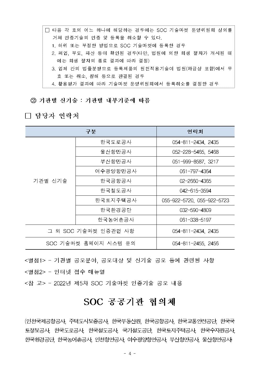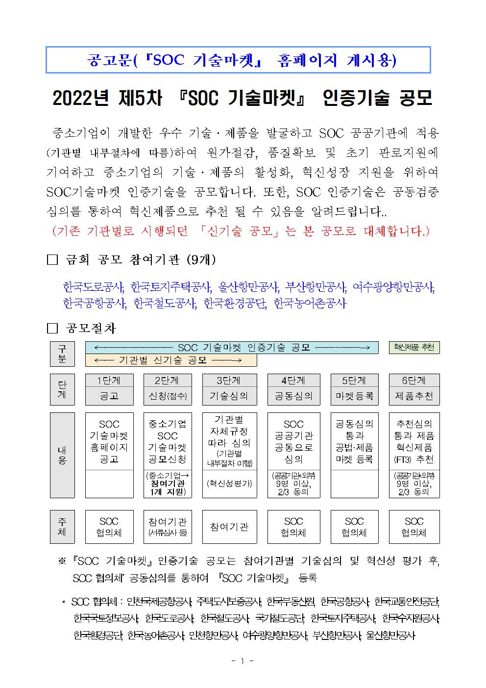 ★(공고) 2022년 5차 SOC 기술마켓 인증기술 통합 공고문.hwp