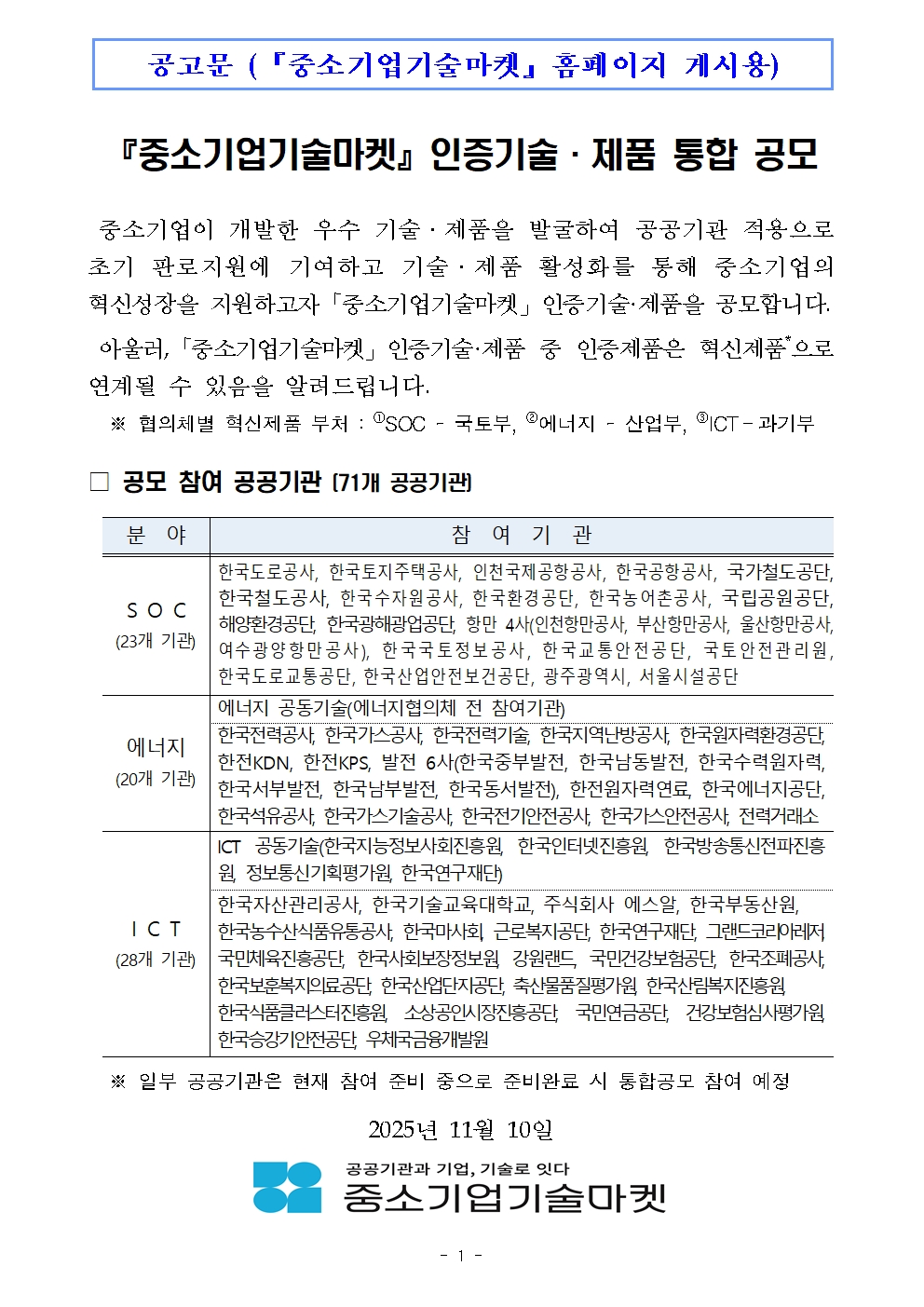 『중소기업기술마켓』 인증기술·제품 통합 공고문 1부.hwpx