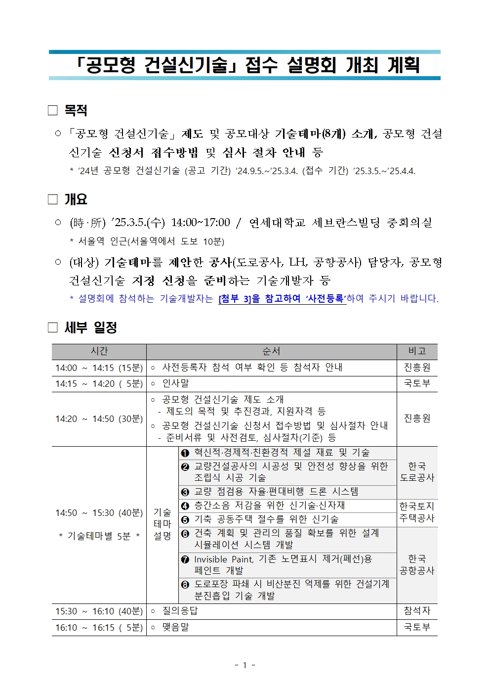 공모형 건설신기술 접수 설명회 개최(3.5) 알림