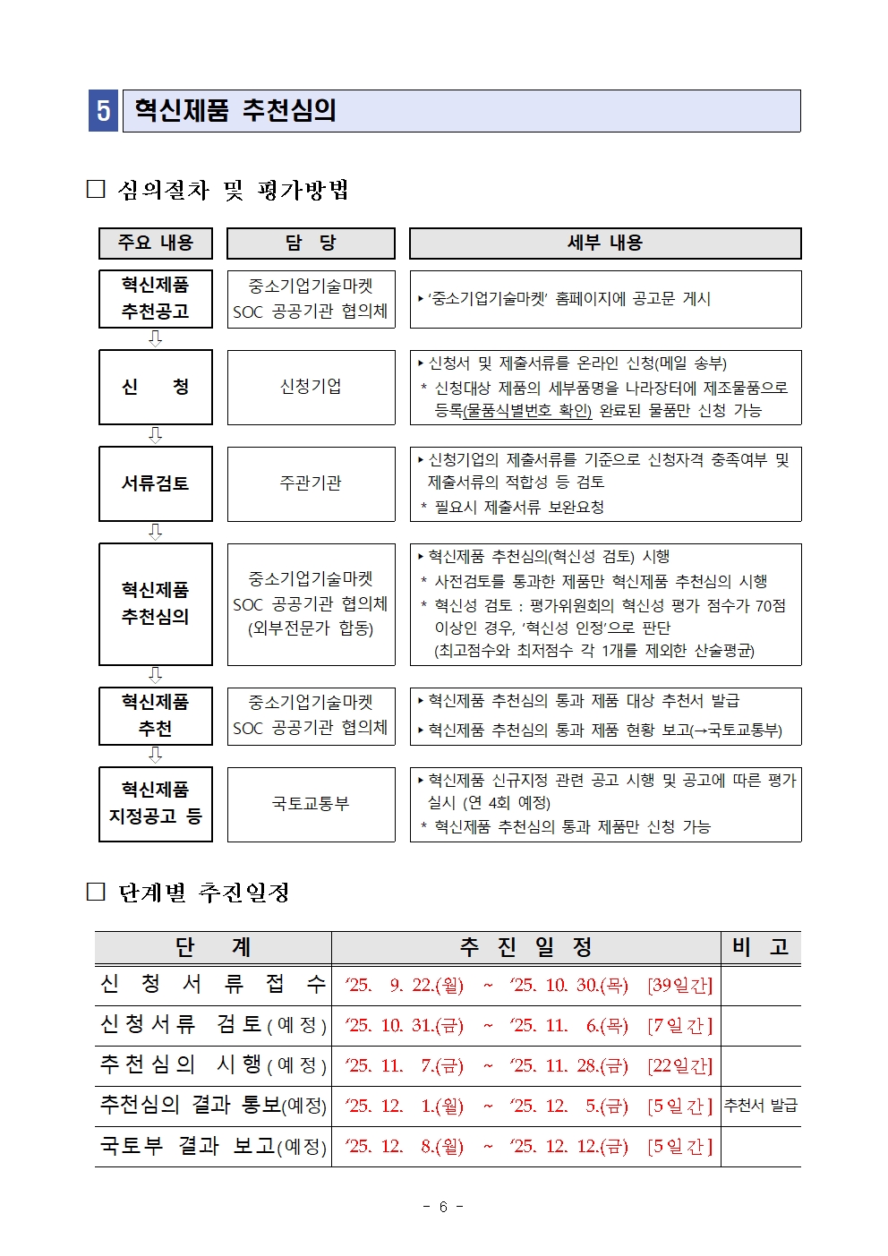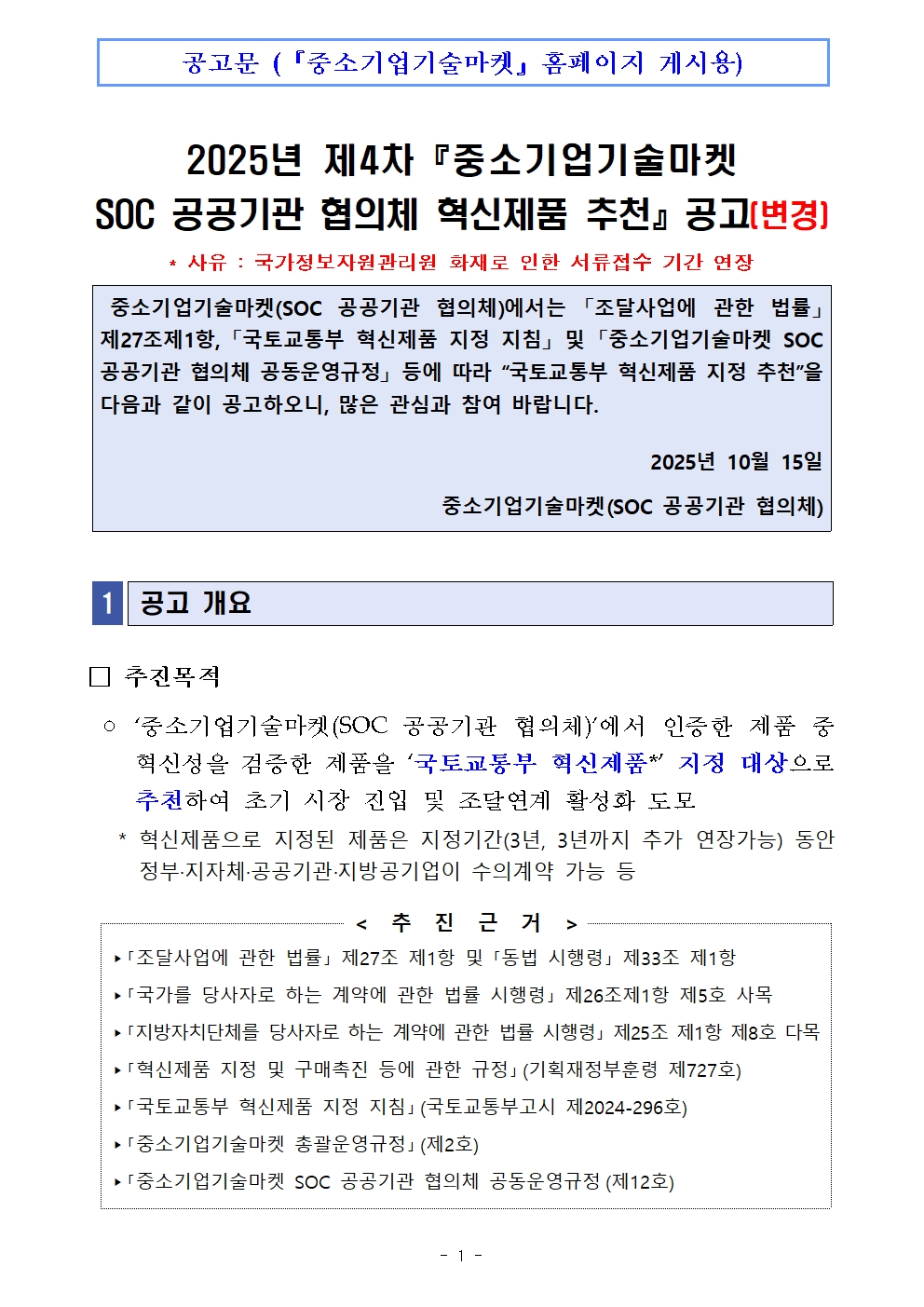 2025년 제4차 중소기업기술마켓 SOC공공기관 협의체 혁신제품 추천 공고(변경)