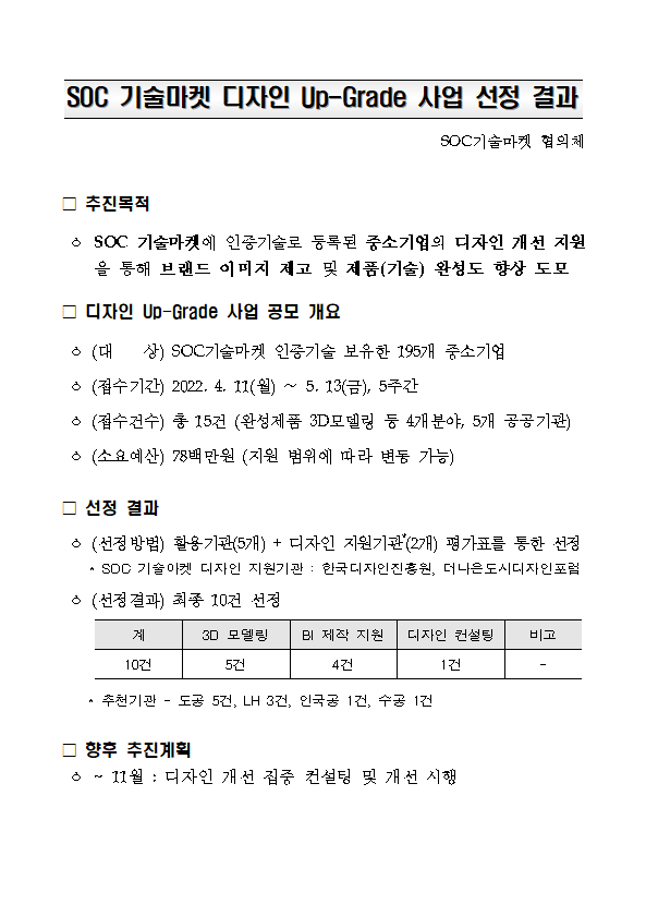 SOC 기술마켓 디자인 Up-Grade 사업 선정 결과 알려드립니다.