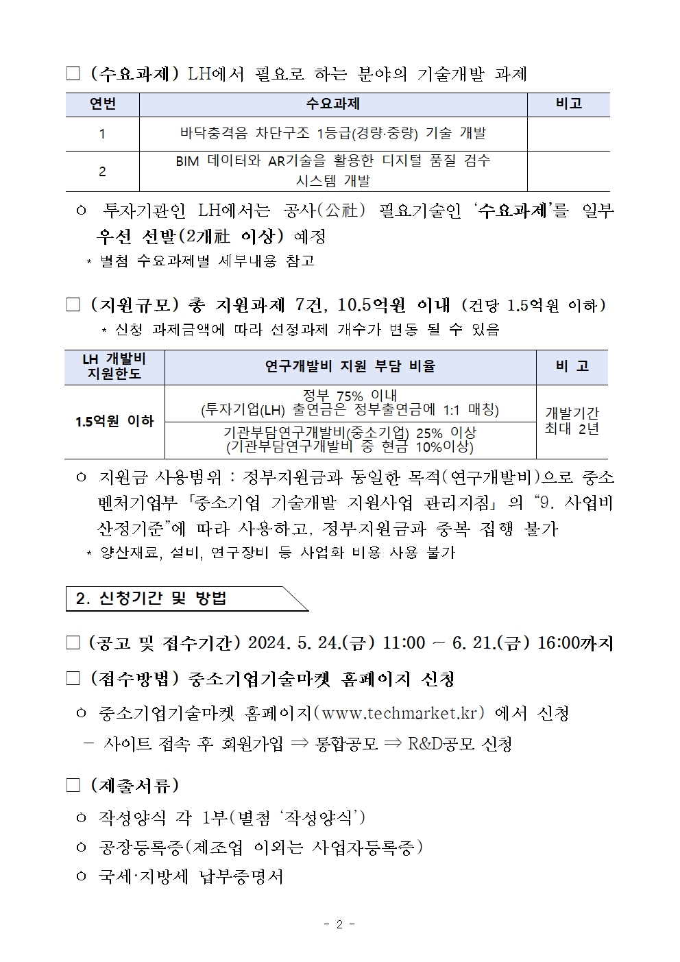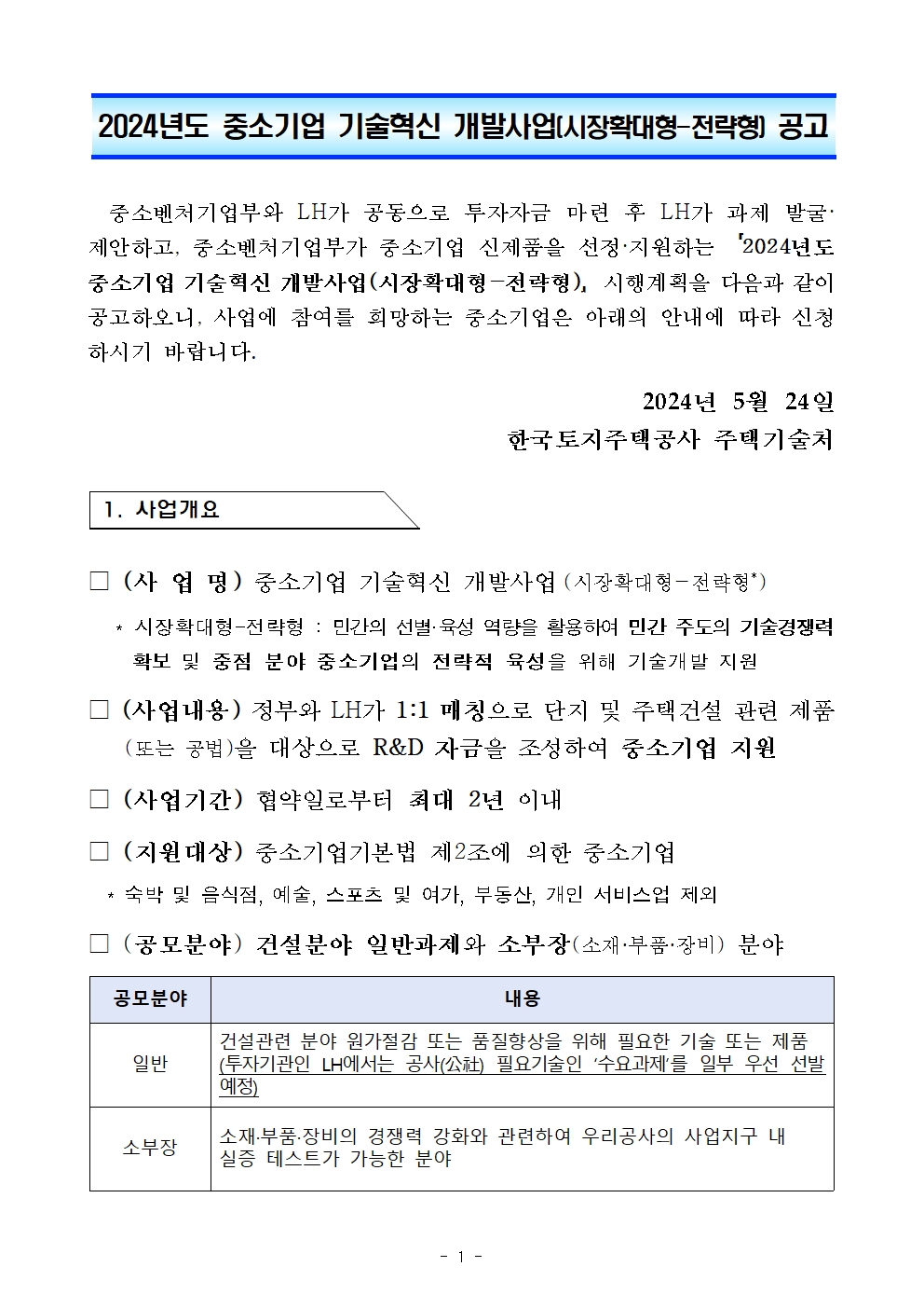 1. (공고문) 2024년도 중소기업 기술혁신 개발사업.hwp