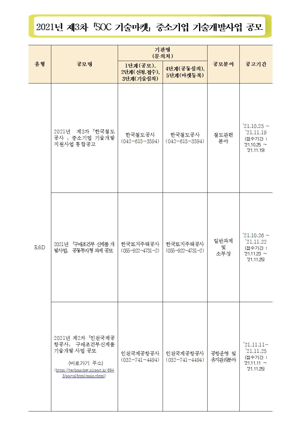 ※ 인천국제공항공사 기술개발사업공모는 당초 11.11(목)에서 연기될 예정입니다(추후 알림예정).