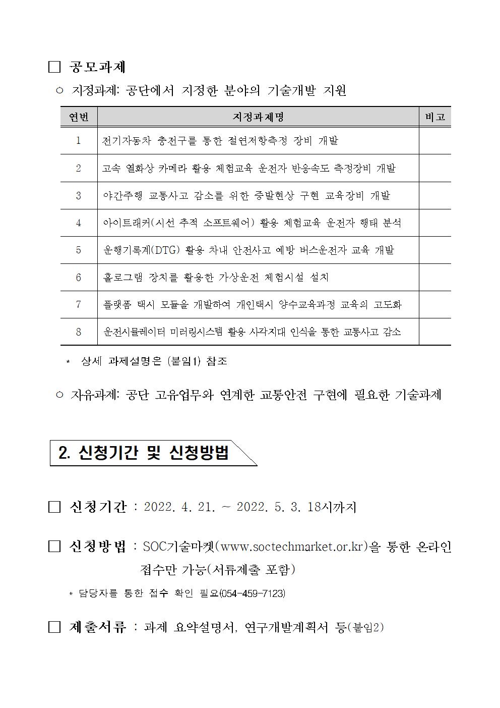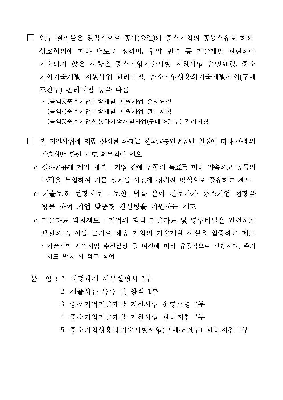 2022년 한국교통안전공단 중소기업 기술개발 지원사업 공고