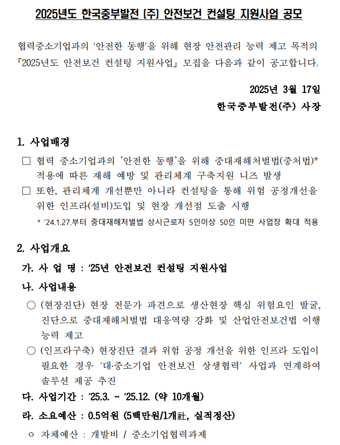 2025년도 한국중부발전(주) 안전보건 컨설팅 지원사업 공고문.pdf