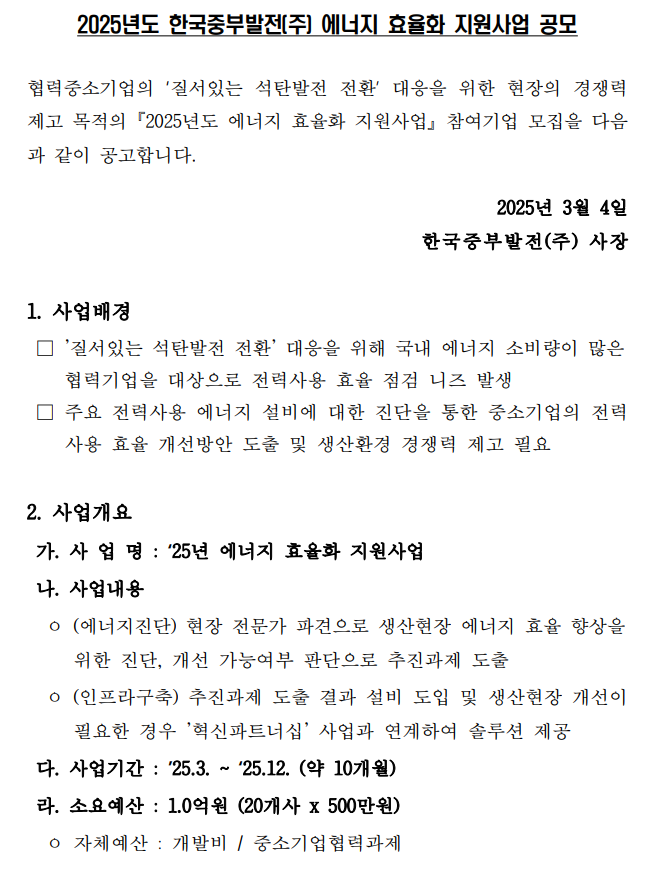 2025년 한국중부발전(주) 에너지 효율화 지원사업