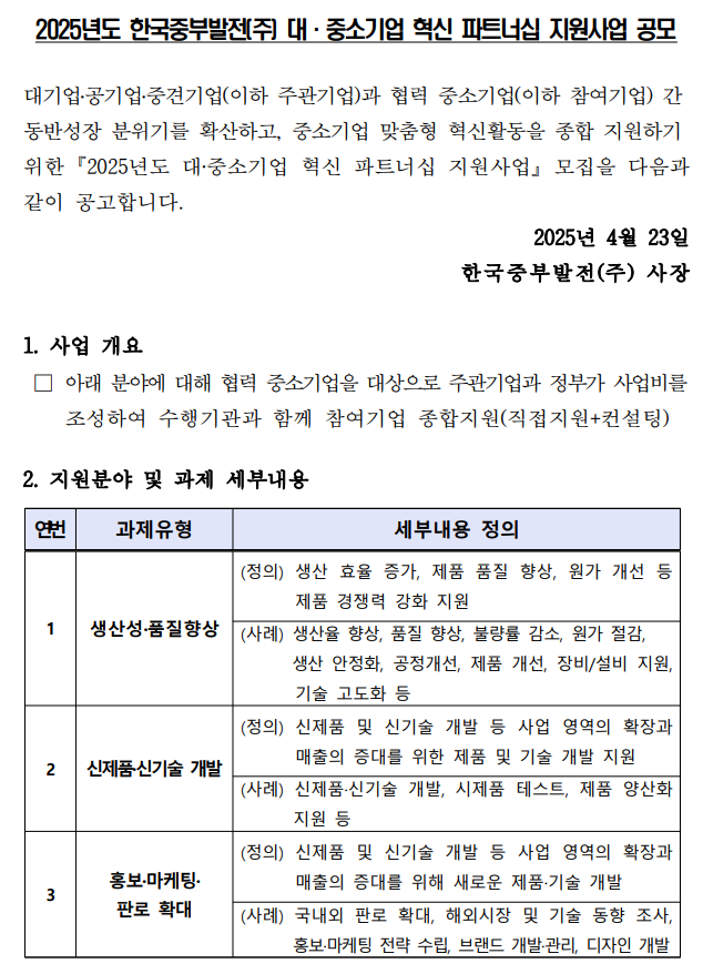 2025년도 한국중부발전(주) 대·중소기업 혁신 파트너십 지원사업 공고문.pdf