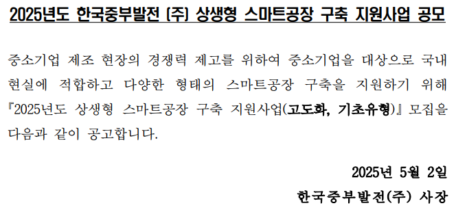 2025년도 한국중부발전 상생형 스마트공장 구축 지원사업 공고문.pdf