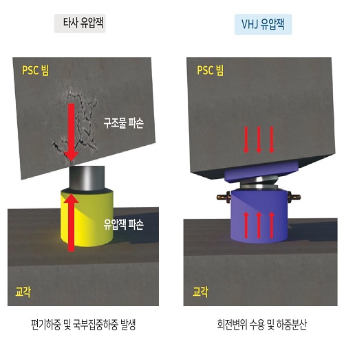 유압잭이 고정단, 일방향, 양방향 등의 3가지 형태를 가지고 있다. 또한 3가지 형태의 유압잭은 교량받침과 같이 모두 신축변위와 회전 변위를 수용할 수 있는 구조로 되어 있고 디지털 변위 및 압력, 기울기를 계측하고 컴퓨터 연산제어 프로그램을 통해서 교량을 정밀 인상하는 공법이다.