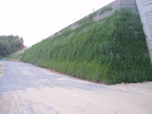 전면에 아연도금 된 철망과 식생매트를 이용하여 토사 유실 방지와 자연과 친화적인 환경을 만들어내며, 연결고리와 띠형 섬유보강재의 기계적 결속을 통한 안정적인 공법