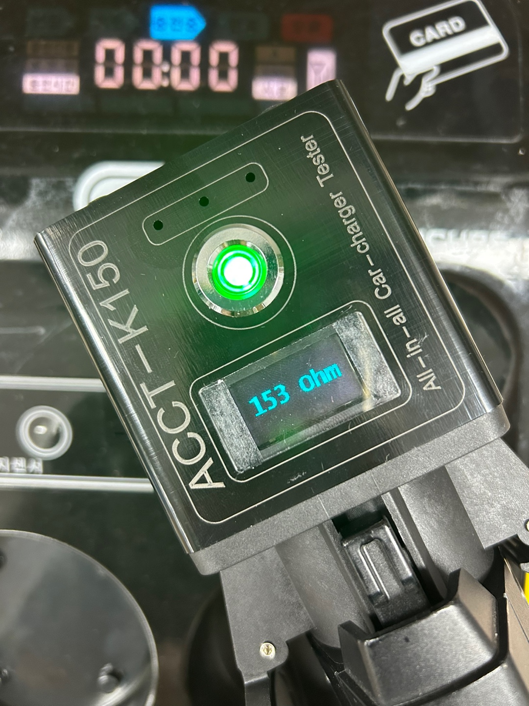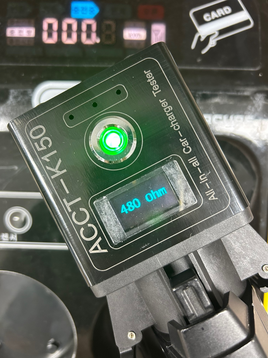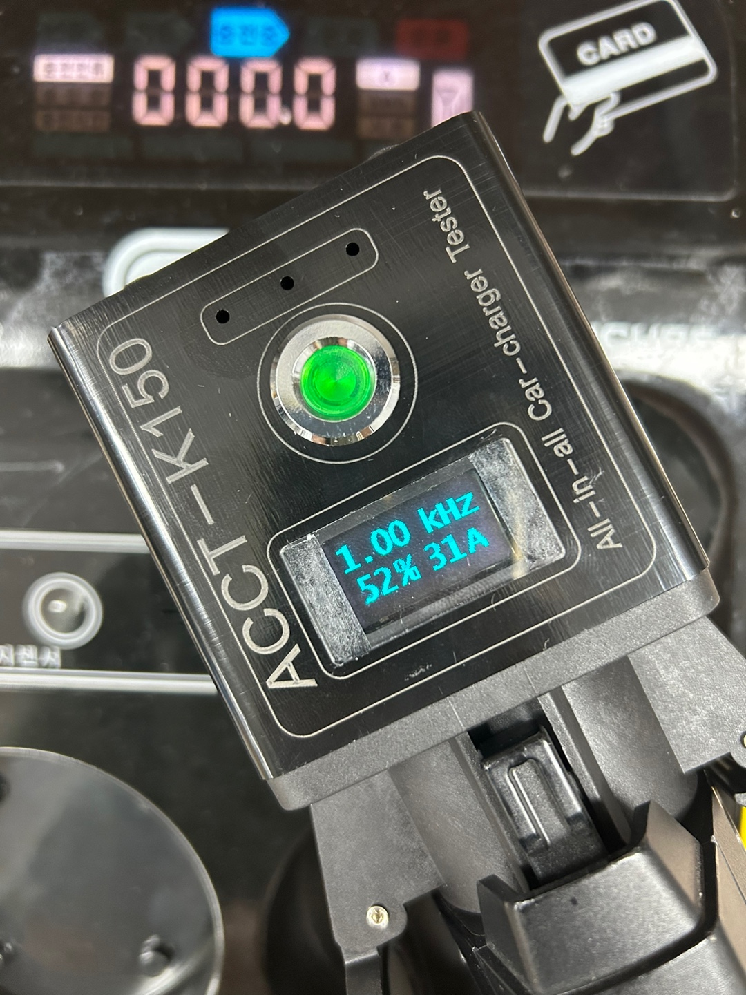 이후 CP 신호 핀의 주파수와 듀티 사이클을 분석/감지하여 최대 허용 전류를 계산하고 이를 바탕으로 주파수(KHz), 듀티 사이클(%), 최대 허용 전류(A), 최대 출력값(W), 스위치 저항값(Ω) 총 5가지를 LCD로 디스플레이하며 부저음과 함께 정상/불량을 판정한다.