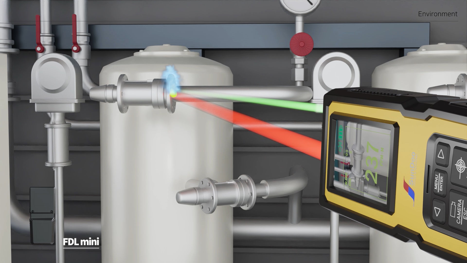 •야외 시인성이 좋은 그린레이저를 사용하여 실외에서도 누출지점을 쉽게 확인 가능