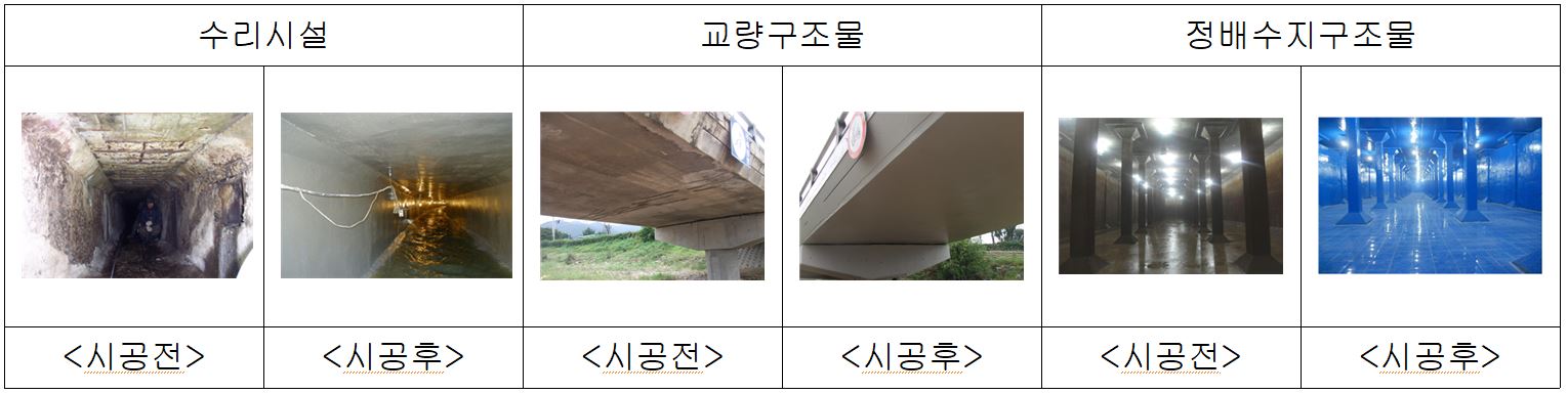 라. 유무기 합성 표면보호재(α – 구조아크릴)의 사용으로 습윤환경 부착성 향상과 내오염성이 향상된다.