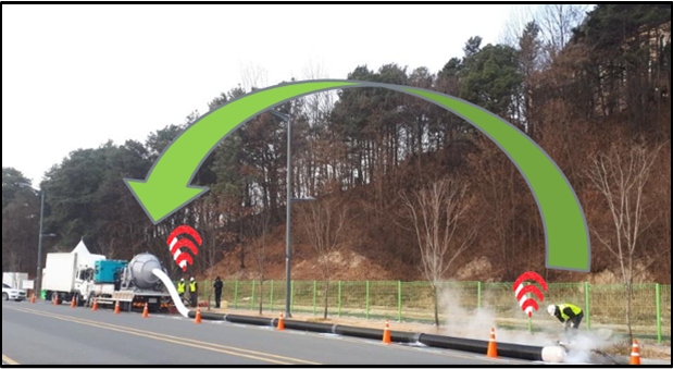 ① 튜브토출장치를 이용하여 관로 내부에 연속적으로 설치하고, 멀티노즐로 연결된 증기열 공급장치를 통하여 경화하는 비굴착 공법 ② 시공정보장치를 통해 시공압력과 경화온도를 확인할 수 있는 기술