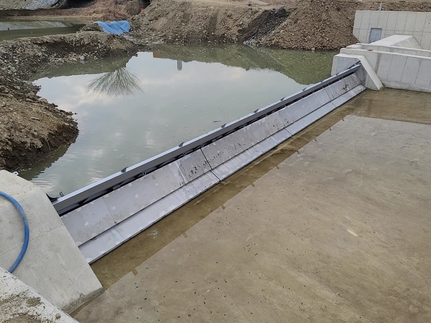 ③밀폐식 유압실린더와 스테인리스 유압라인 일체형 설치공법을 적용하여 유압식 전도게이트 고질적인 문제 였던 고무재질의 유압호수 파손문제를 해결하여 기계 내구연한을 크게 향상, 하자발생율 대폭 감소함으로써 유지관리가 매우 용이한 신기술공법의 가동보.