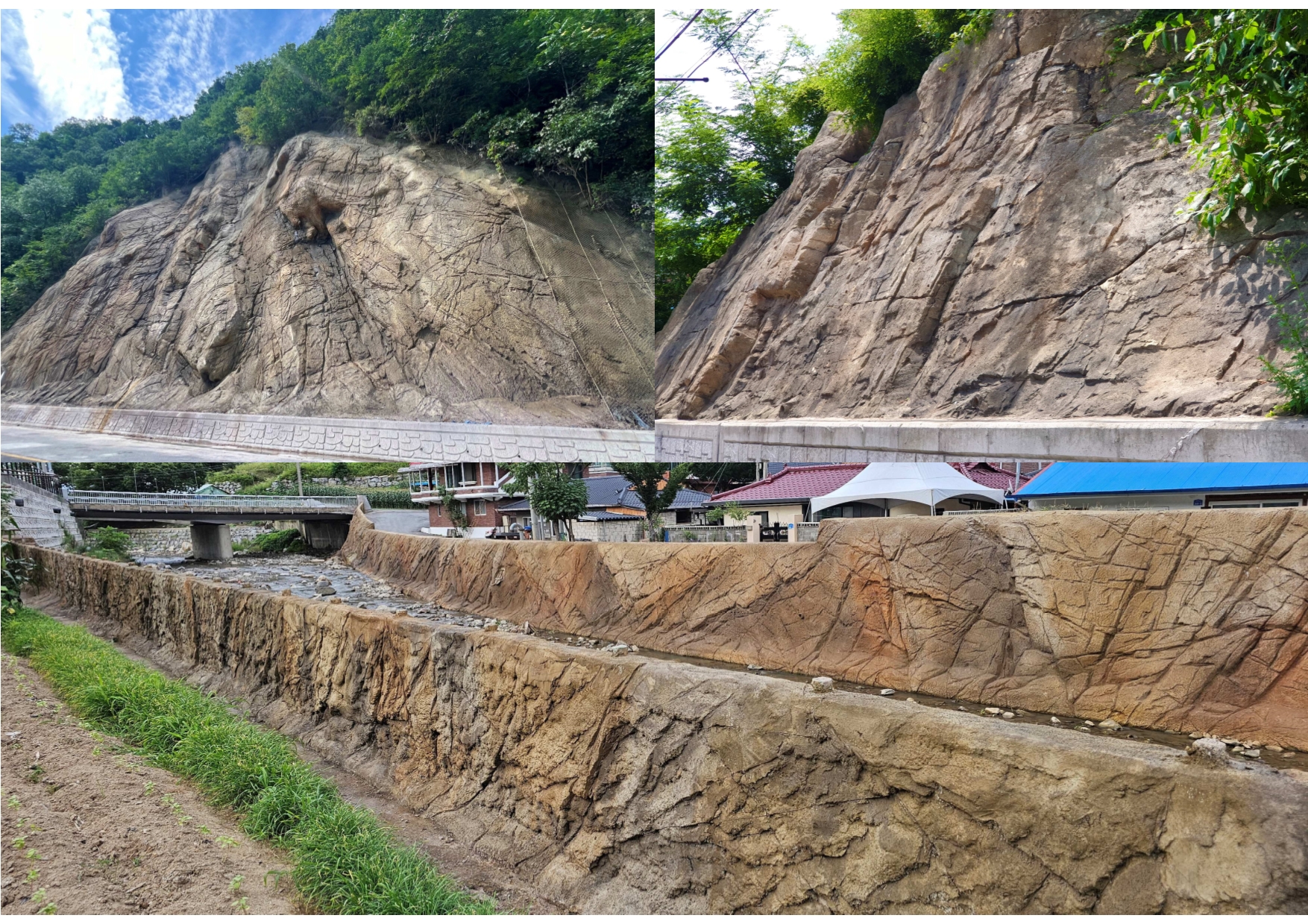 [특허 제10-2299985호 구조물용 숏크리트 조성물](재료특허), [특허 제10-1674865호 숏크리트를 이용한 합벽식 옹벽 및 이의 시공방법](시공특허)를 기반으로 개발되어 다양한 환경에 최적화된 기능성과 심미성을 제공합니다.