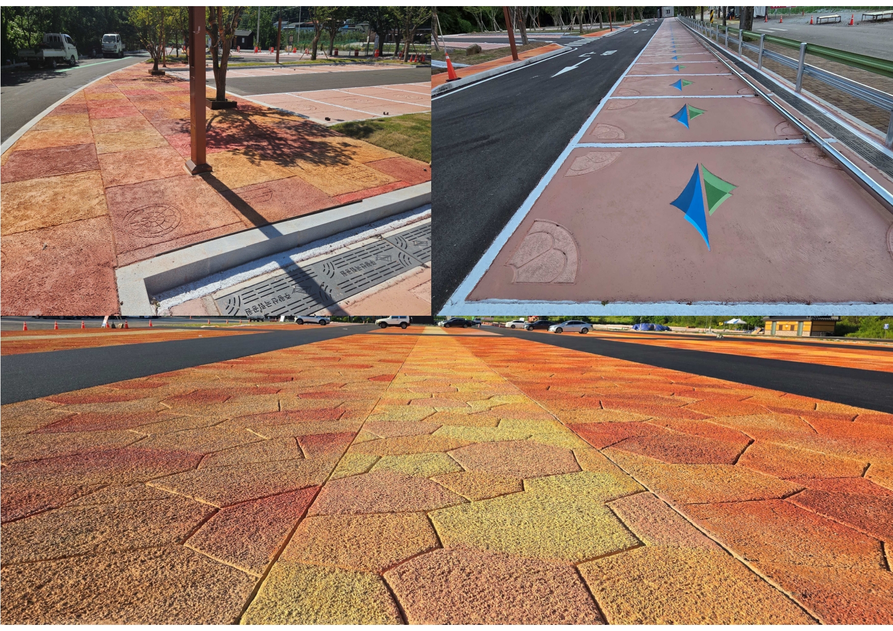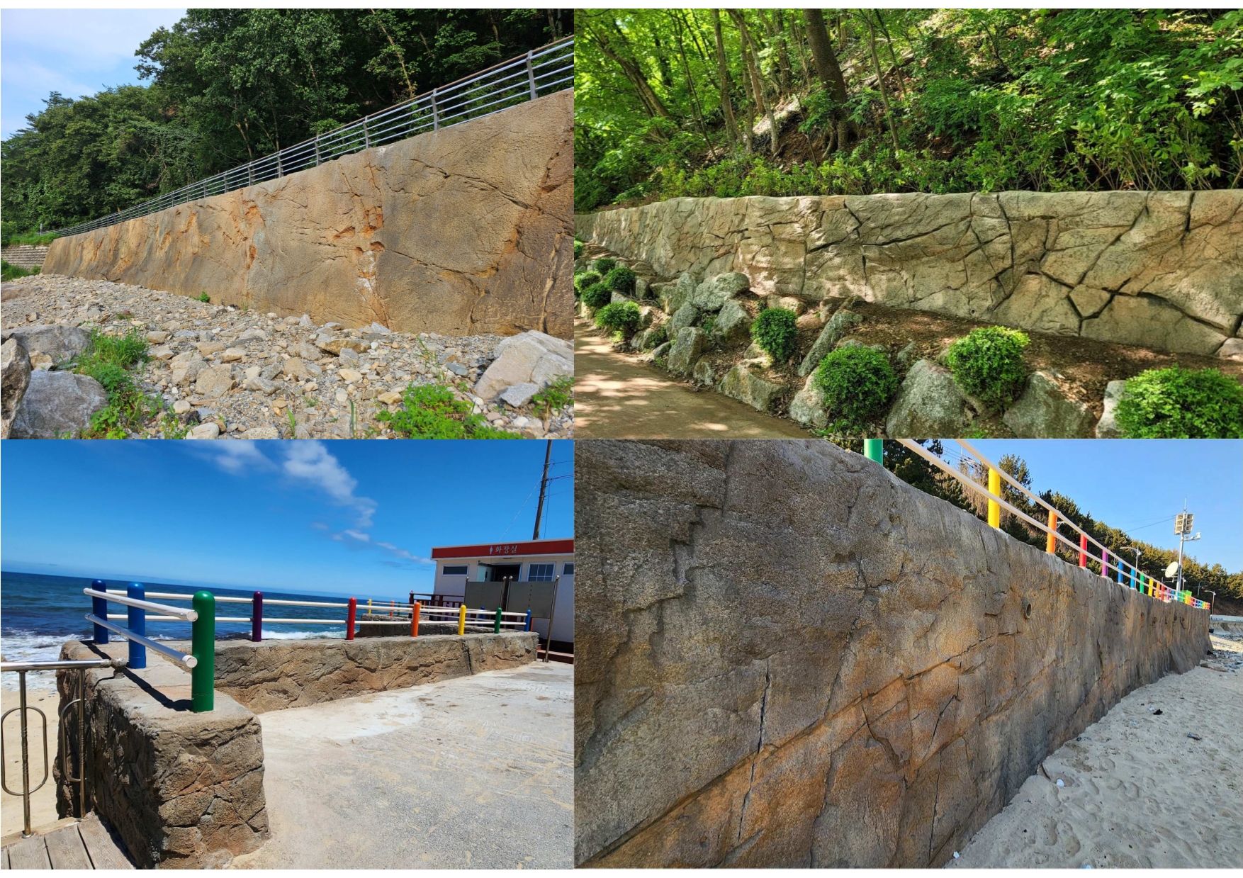 - 기존 회백색 중심의 거푸집 옹벽과 달리, 인력 조각을 사용함으로 자유롭고 독창적인 디자인이 가능하며, 칼라 콘크리트를 활용하여 다양한 색상과 텍스처를 구현합니다.